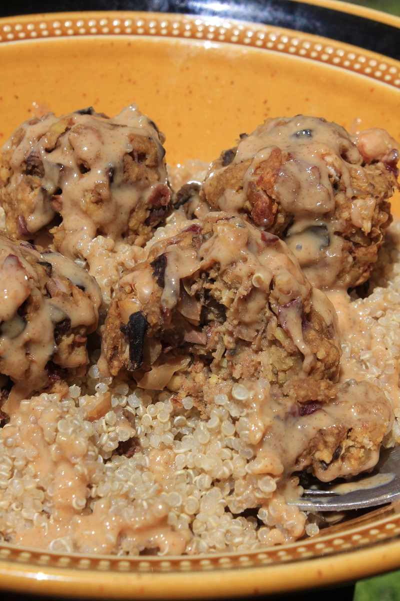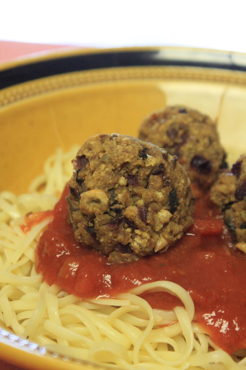 These meatless meatballs are super easy to make with only 8 ingredients, packed with nutrition from the walnuts, mushrooms and beans, baked instead of fried to keep them healthier, and are a perfect, filling component to a meal. They are hearty, moist, slightly spicy from the curry, rich with flavor from the walnuts and mushrooms and will make your taste buds sing without making your waistband cringe.