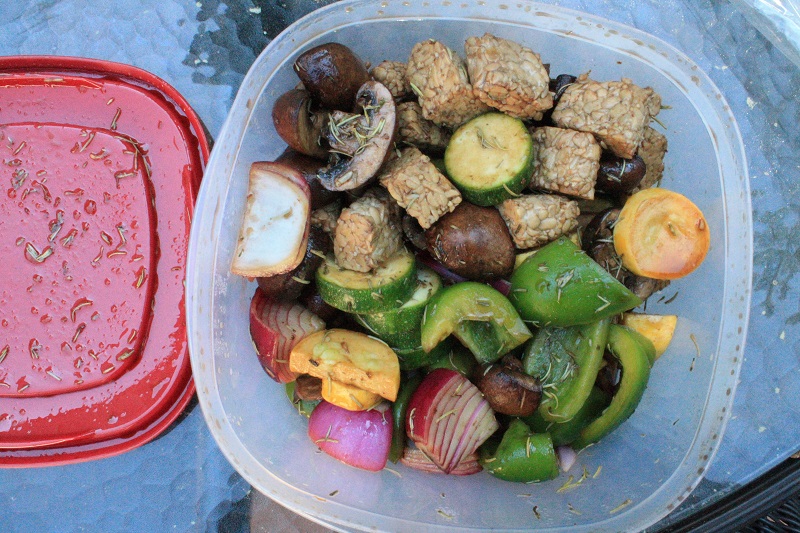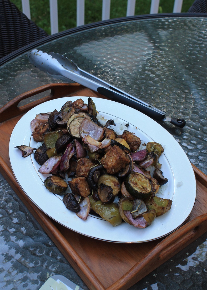 Tempeh Kebabs Notes: I used slightly different veggies; feel free to choose the ones you like on the grill. I also tripled the amount of veggies and marinade. Annnd, being a total space cadet, I forgot the Kebab skewers so actually, I didn’t make kebabs, I just grilled them. Not as pretty but just as delicious!