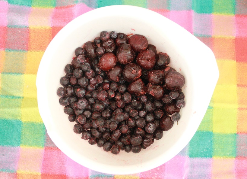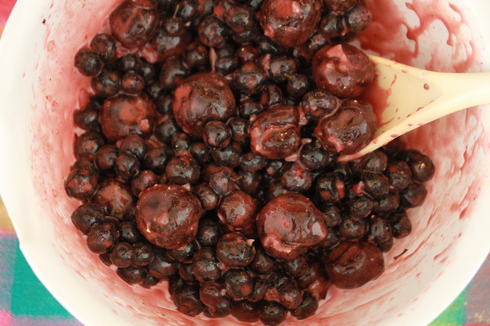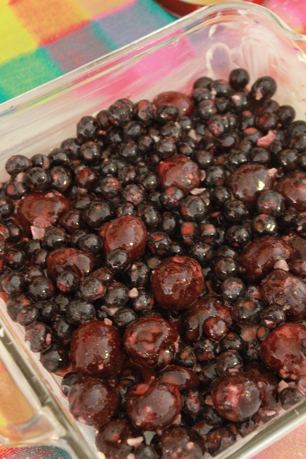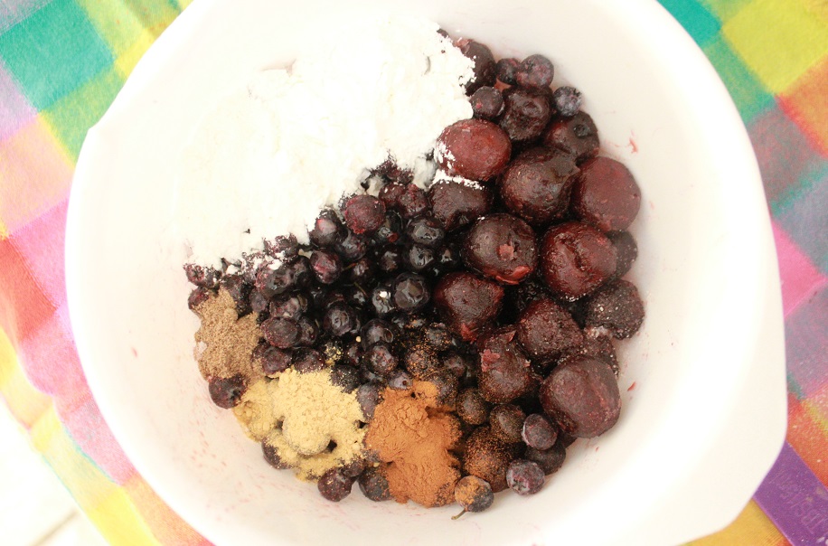 Loads of cherries and blueberries spiced with rich cardamom, ginger and cinnamon and topped with a blue cornmeal cobbler biscuit. Quick, easy & delicious!
