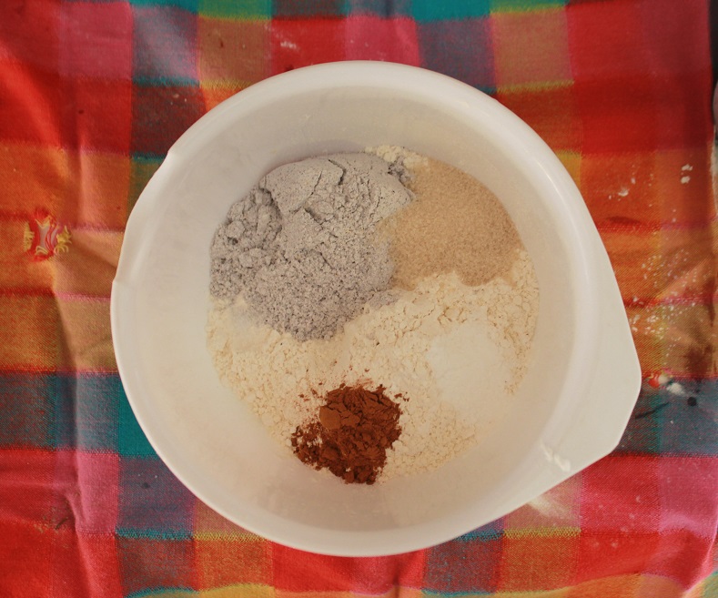 - In a large bowl, combine the flour, cornmeal, sugar, baking powder, salt and cinnamon.
